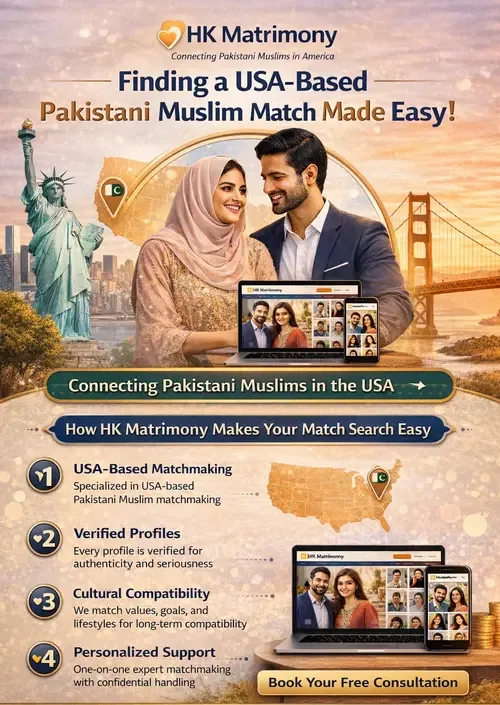 Are you living in the USA and searching for a life partner who shares your values, culture, and goals? The journey to finding the right match shouldn’t be difficult or stressful. At HK Matrimony, we specialize in connecting successful Pakistani Muslims in the USA with partners who are equally dedicated to building a meaningful, lasting relationship. With our exclusive network, verified profiles, and personalized matchmaking services, we make it easier than ever to find your ideal match through Pakistani matrimony—without the guesswork.